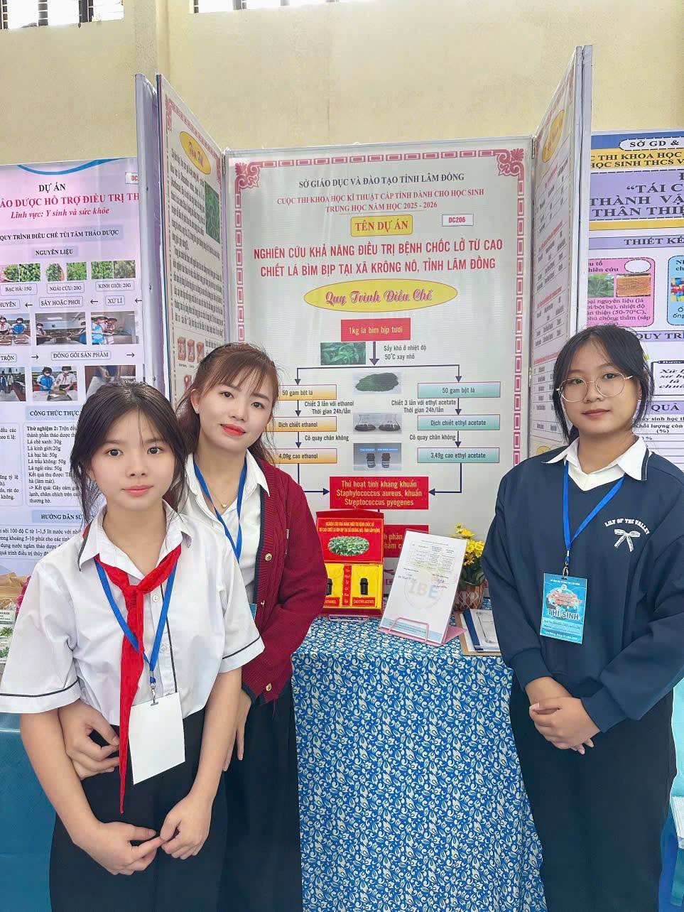🏆 Nhà trường trân trọng tuyên dương và chúc mừng cô giáo Lê Thị Hoàng Anh cùng các em học sinh Nguyễn Ngọc Uyển Nhi (lớp 9A2) và Nguyễn Lê Bảo Trâm (lớp 8A1) đã xuất sắc đạt Giải Ba cấp tỉnh Cuộc thi Khoa học Kỹ thuật năm học 2025–2026.