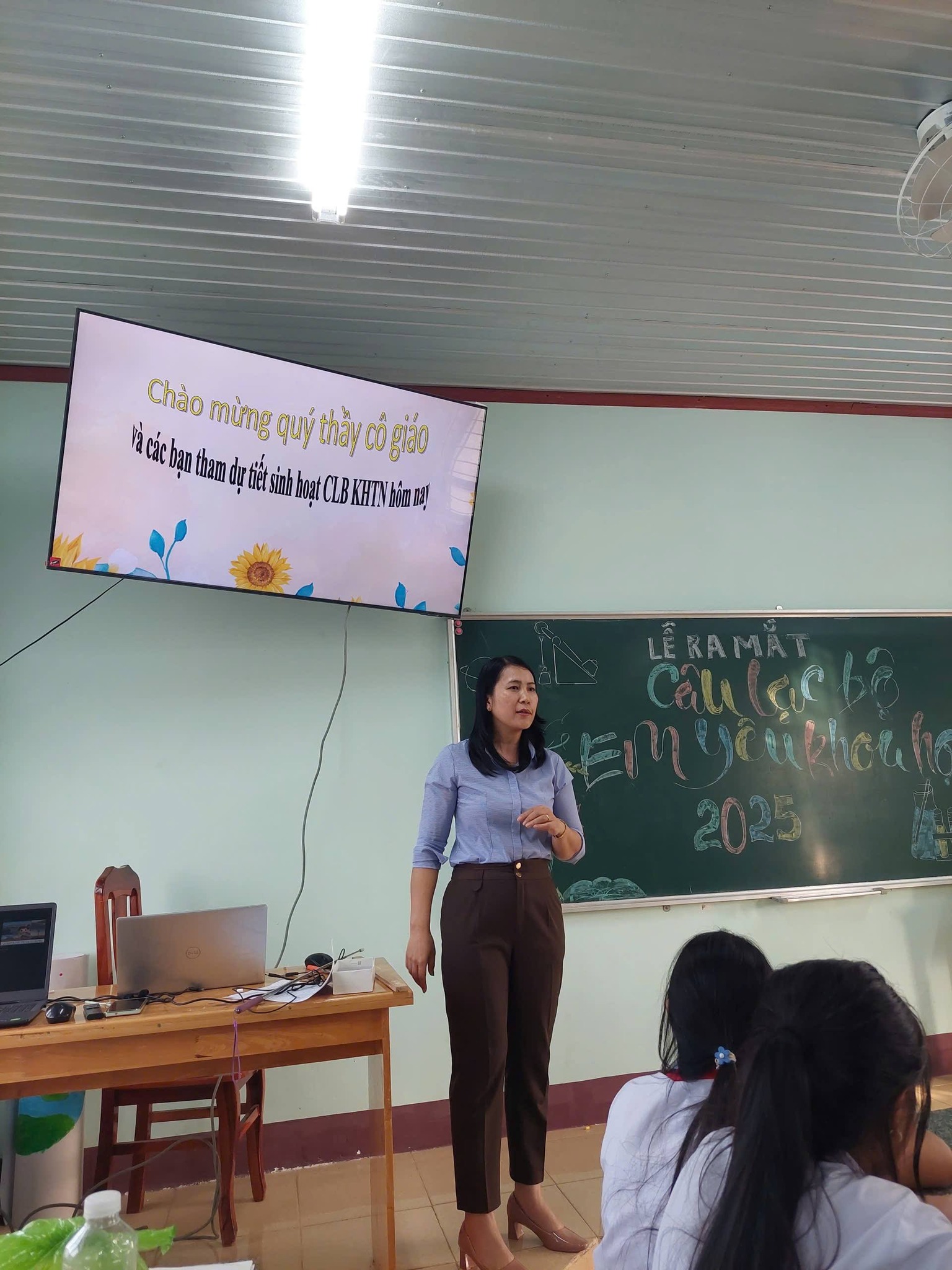 Giáo viên chủ nhiệm câu lạc bộ Lê Thị Hoàng Anh cùng các đồng chí trong nhóm Khoa học Tự nhiên (KHTN) trực tiếp tham gia hướng dẫn, giảng dạy và tổ chức hoạt động cho học sinh. Giới thiệu mục tiêu, nội dung sinh hoạt